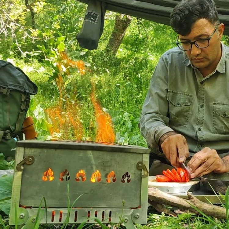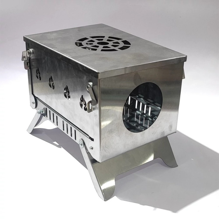 آتشدان تاشو استیل وسیله ای سبک و کمجا برای آتش پایدار با هیزم کم بدون آسیب زدن به زمین و طبیعت این آتشدان از ورق استیل یک میل با ابعاد عرض 18 طول 25 ارتفاع 16 ارتفاع پایه 10 وزن 2100 گرم